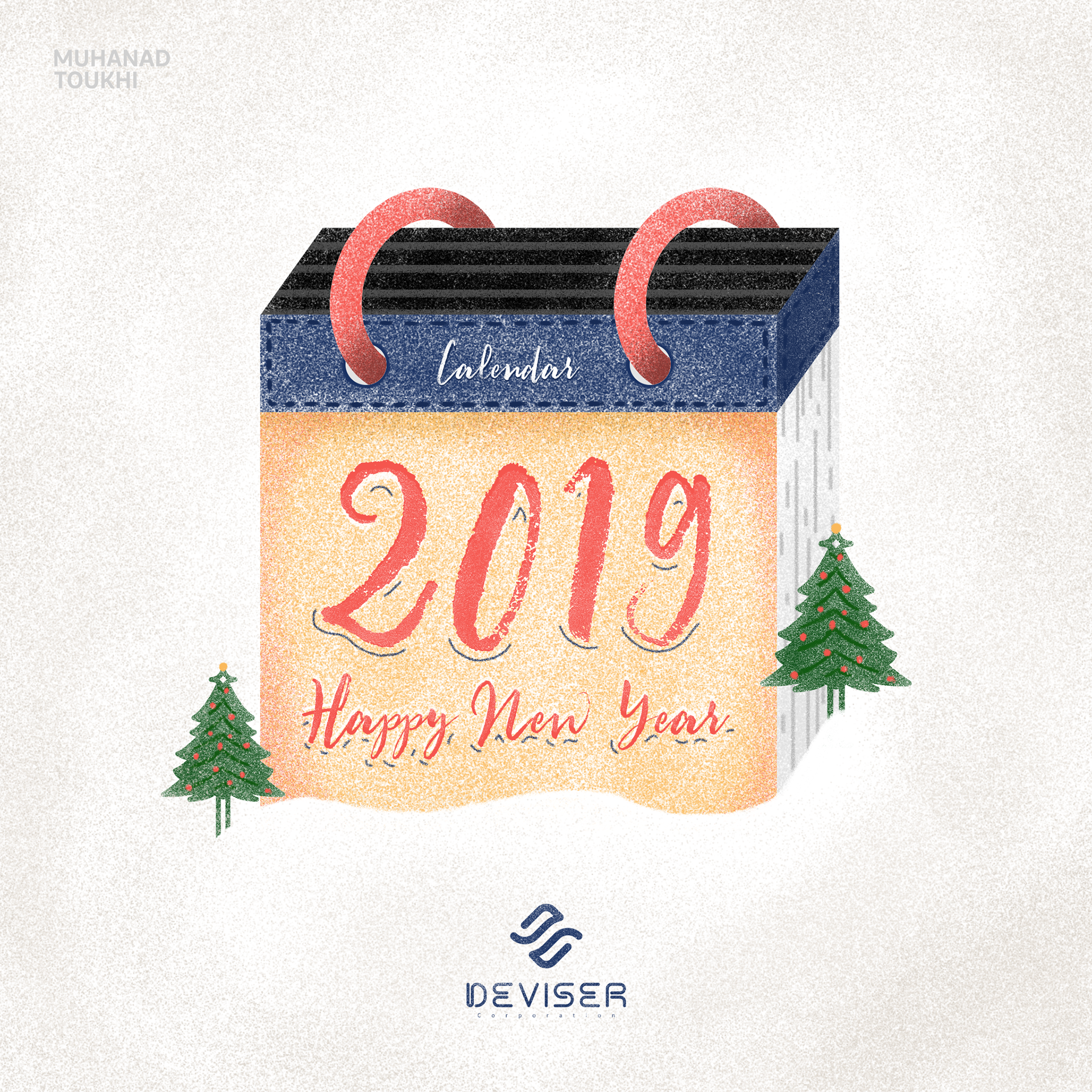 A calendar with 2019 written on it represent the new year, done for Team Deviser.
